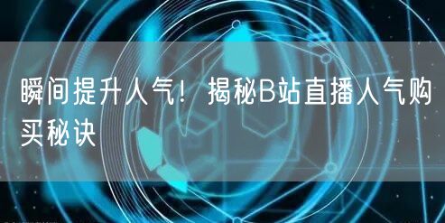 如何快速提升人气在当下这个竞争激烈的互联网时代成为了人们关注的焦点。尤其是针对广大热爱B站直播的用户们来说,直播间的流量与人气成为了众多主播们的核心竞争力之一。那么,如何瞬间提升人气呢?本文将为你揭秘B站直播人气购买的秘诀。