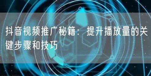 抖音视频推广秘籍:提升播放量的关键步骤和技巧