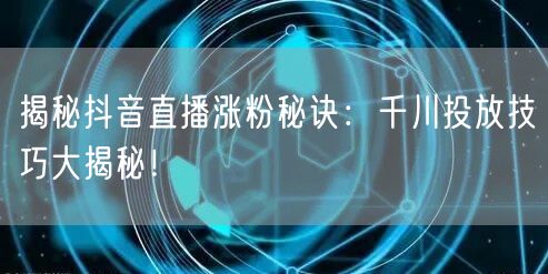 揭秘抖音直播涨粉秘诀:千川投放技巧大揭秘!