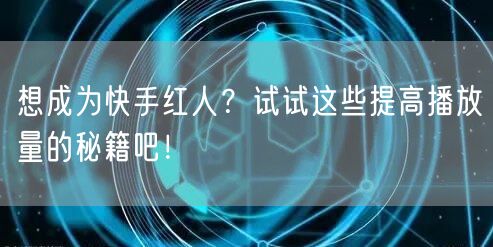 想成为快手红人?试试这些提高播放量的秘籍吧!