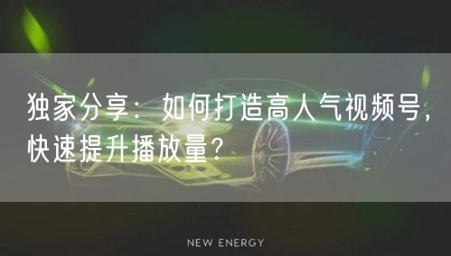 独家分享:如何打造高人气视频号,快速提升播放量?